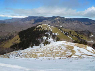 中山道を上がり、古峠(和田峠)から中央分水嶺トレイルを三峰山まで歩きました。雪も少なくなっていました。緩やかな笹の稜線は美しく、三峰山からの展望も素晴らしく、360°の大展望でした。多少、雲もありましたが北アルプス、八ヶ岳、中央アルプスを望む事も出来ました。富士山も見えていました。 |