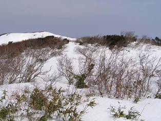 。少し急坂を下って次の頼母木山へは緩やかな登りです。夏道も所々現れていますが今は