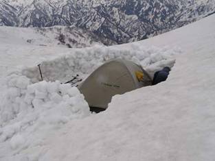 温が上がればまた雪崩の危険もありますのでとてもここを通る気になれません。そこでこ