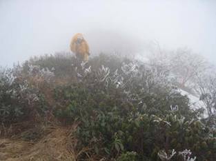 の斜面を上がる様になりました。三人目の登山者が下ってきてやはりひどい霧だ、と言っ